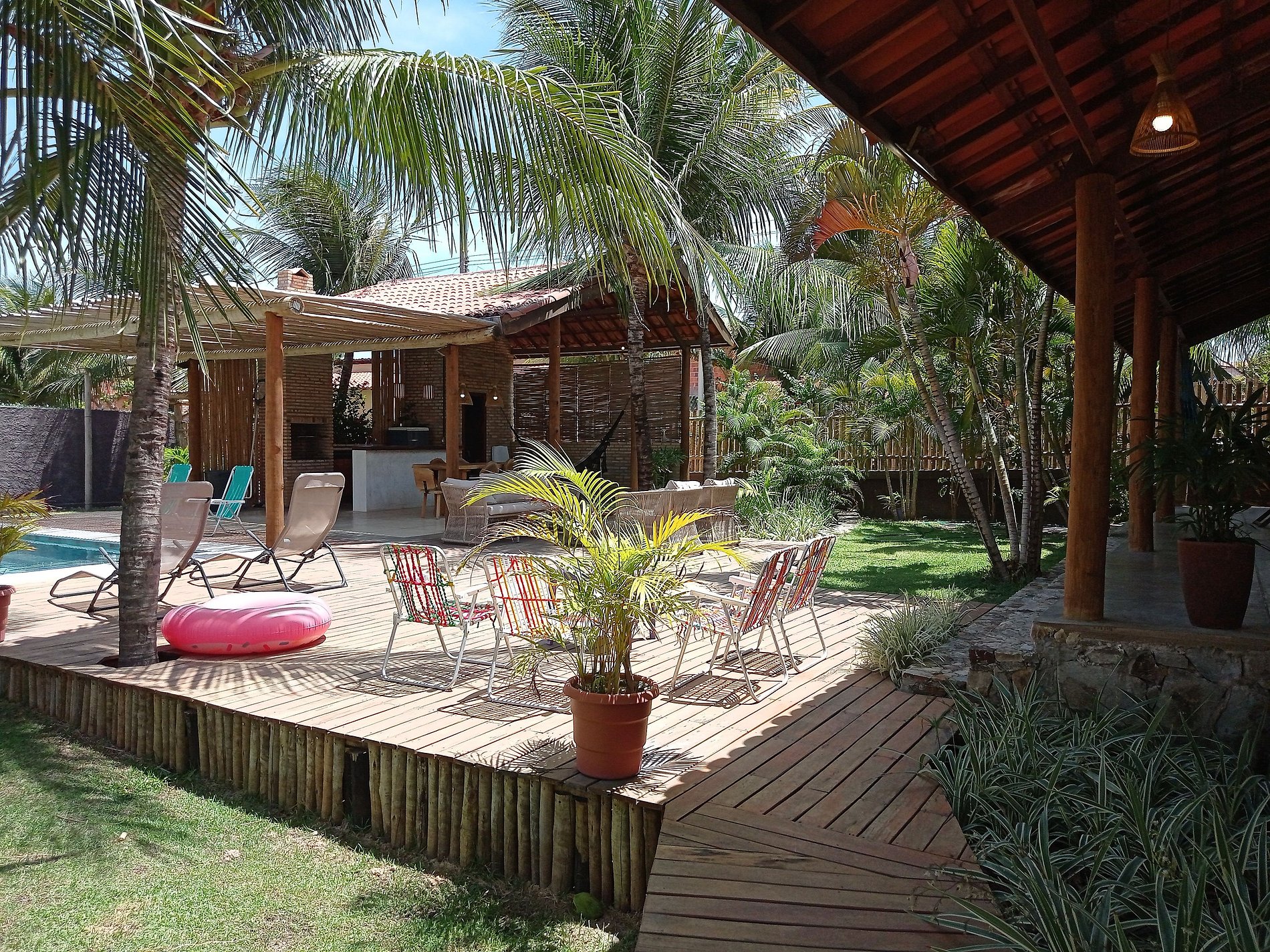 Os hóspedes têm acesso completo à casa, ao jardim, à varanda com redes, ao deck com piscina, à área da churrasqueira.