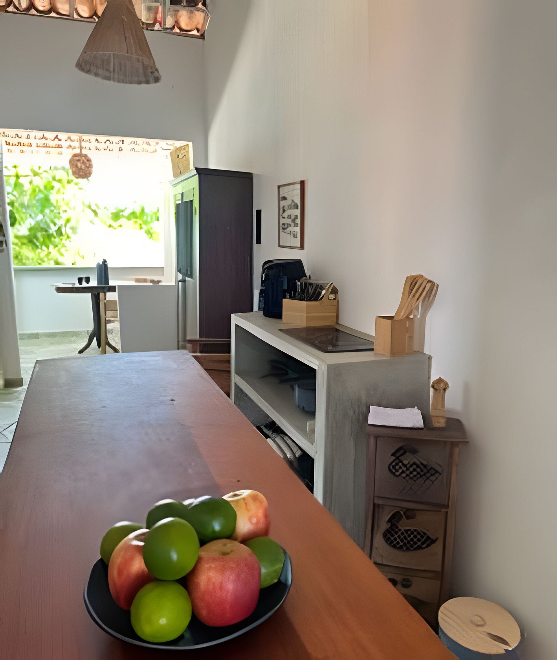 O espaço foi pensado para oferecer conforto na medida certa: quarto de casal com ar-condicionado, segundo quarto arejado com ventilador, cozinha compacta para refeições leves e um terraço perfeito para relaxar, trabalhar ou apreciar a brisa do mar.