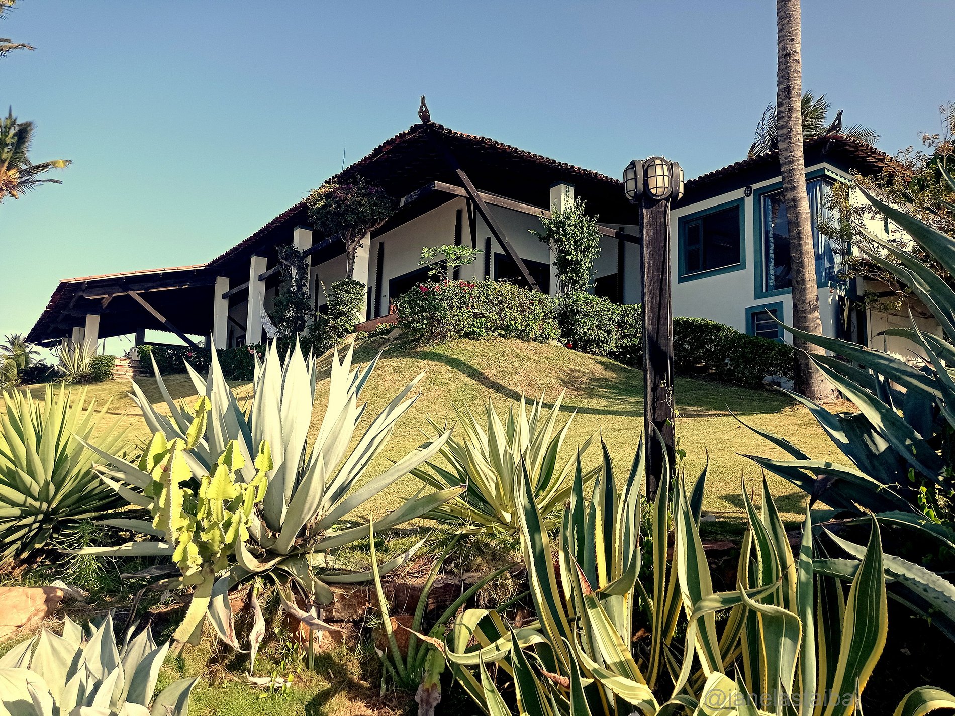 Todo esse paraíso é cuidado pela senhora Liduína e o senhor Antônio que moram em uma casa anexa ao terreno. São super atenciosos e solícitos e estão lá exclusivamente para os cuidados com o jardim e a piscina.