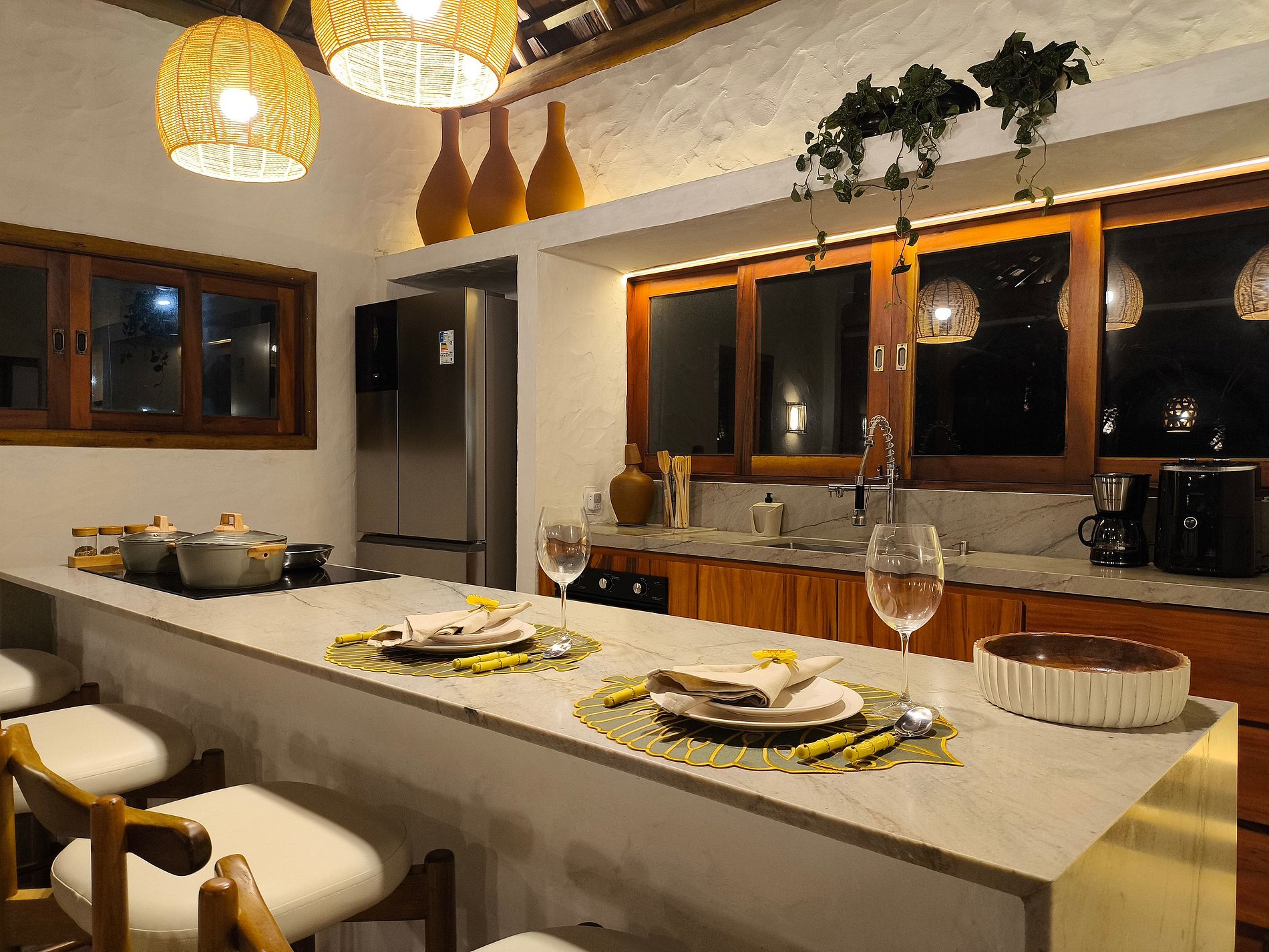 Assinada pela arquiteta Marina Gadelha, a casa foi cuidadosamente projetada para acolher — corpo, mente e alma. Cada detalhe nasceu com um propósito: oferecer conforto, simplicidade elegante e uma conexão profunda com a natureza ao redor.