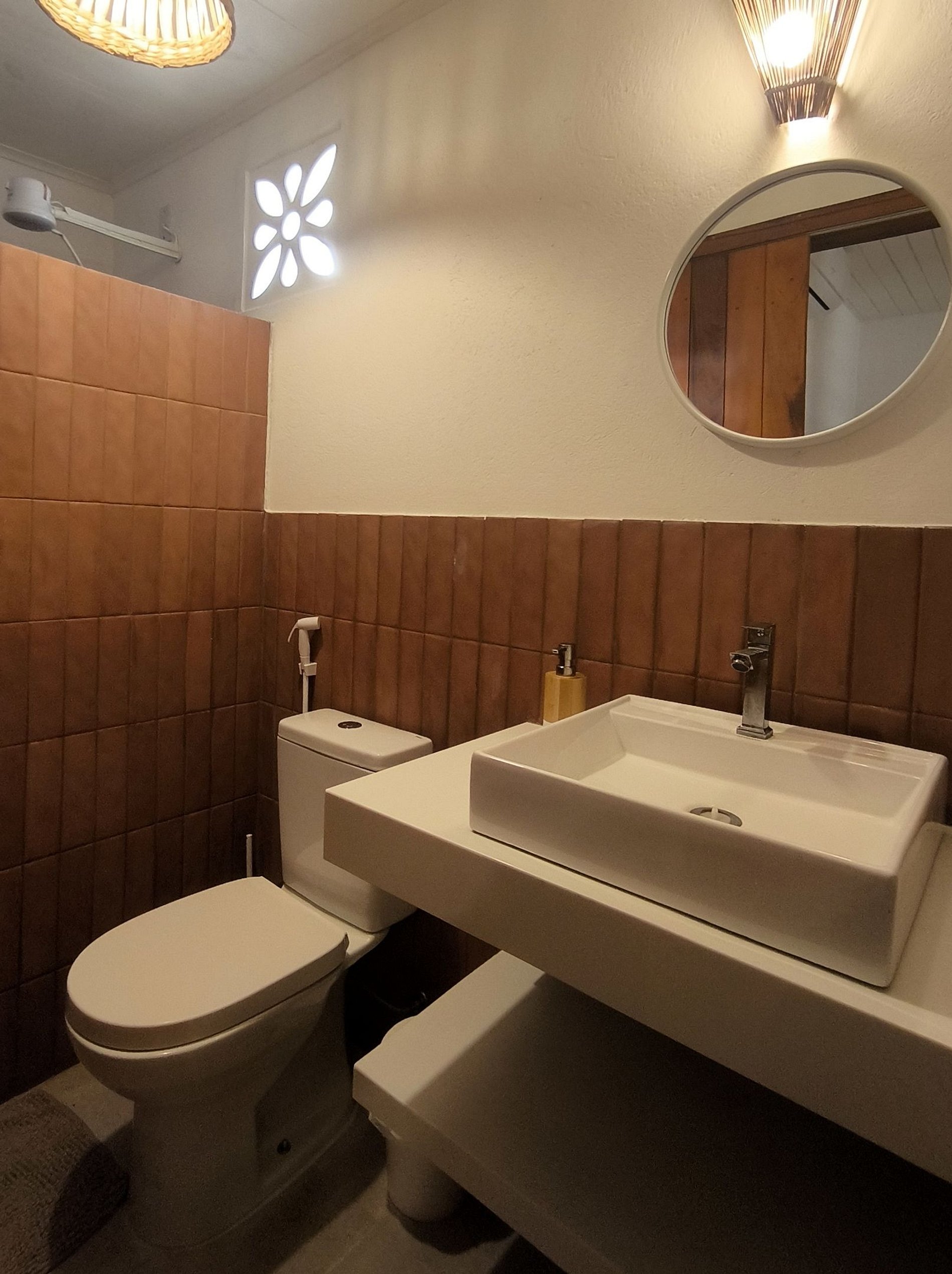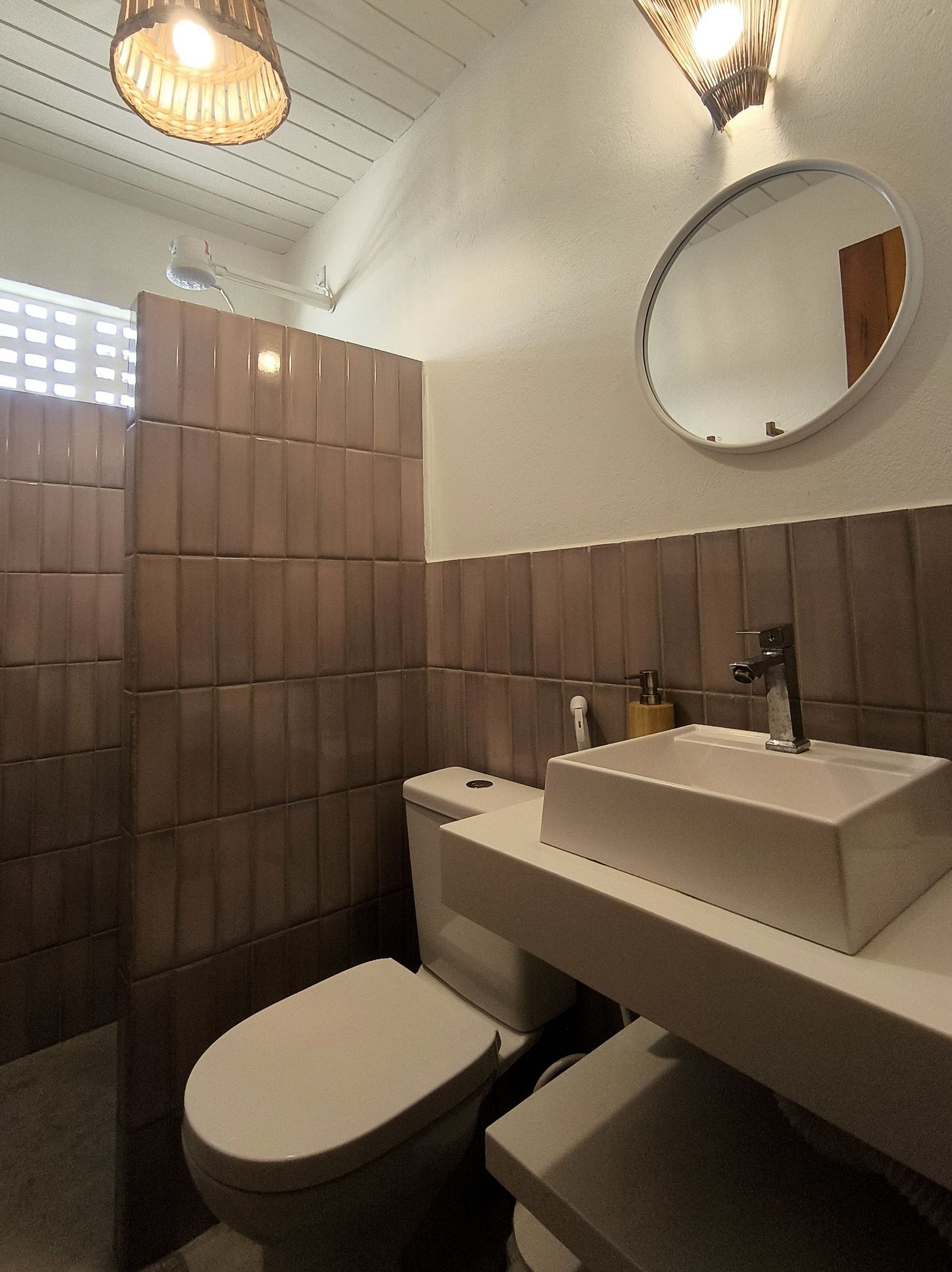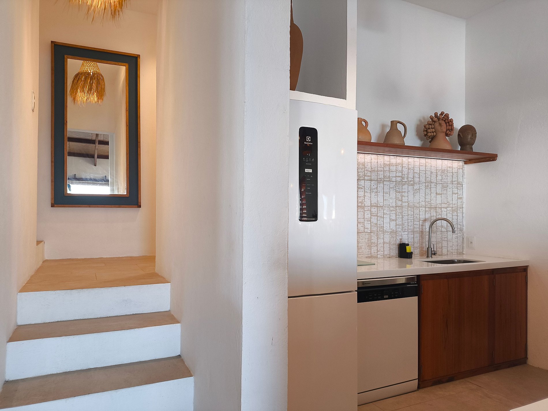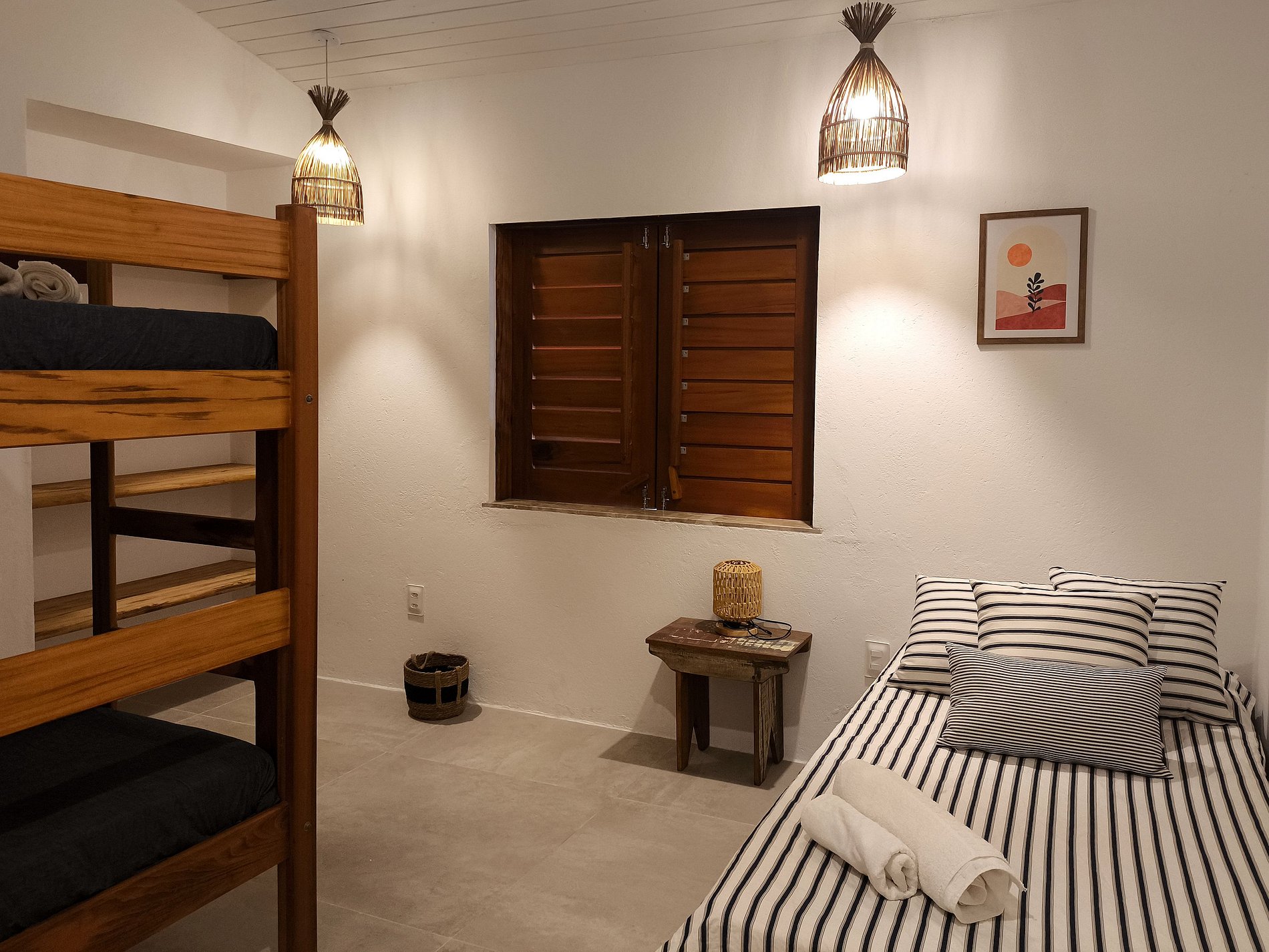 A casa oferece total privacidade e conforto para famílias, grupos e hóspedes que vêm a eventos no Hotel Saline. Todos os banheiros possuem chuveiro elétrico, internet Starlink de alta velocidade, e a decoração é rústico-chique, combinando charme praiano e aconchego. A funcionária fixa pode auxiliar na preparação do café da manhã, mediante fornecimento dos insumos pelos hóspedes, e na arrumação diária das camas.