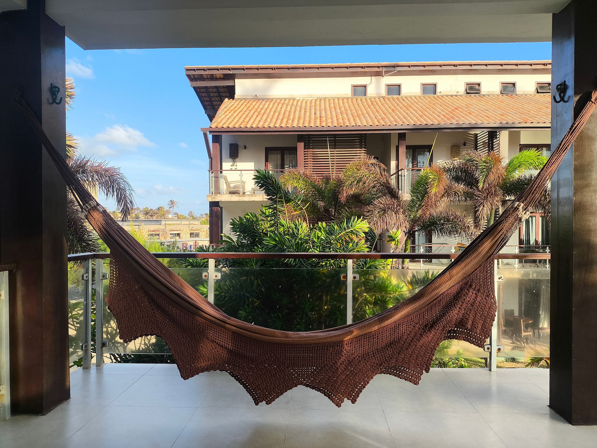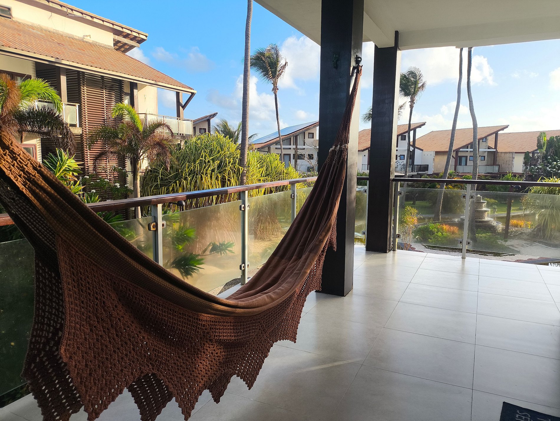O apartamento se destaca pela ventilação natural, pelas duas varandas com redes e pela integração com a paisagem do Taíba Beach Resort. A vista para a área de piscinas, o nascer do sol e o ambiente arborizado trazem uma sensação de calma e bem-estar.