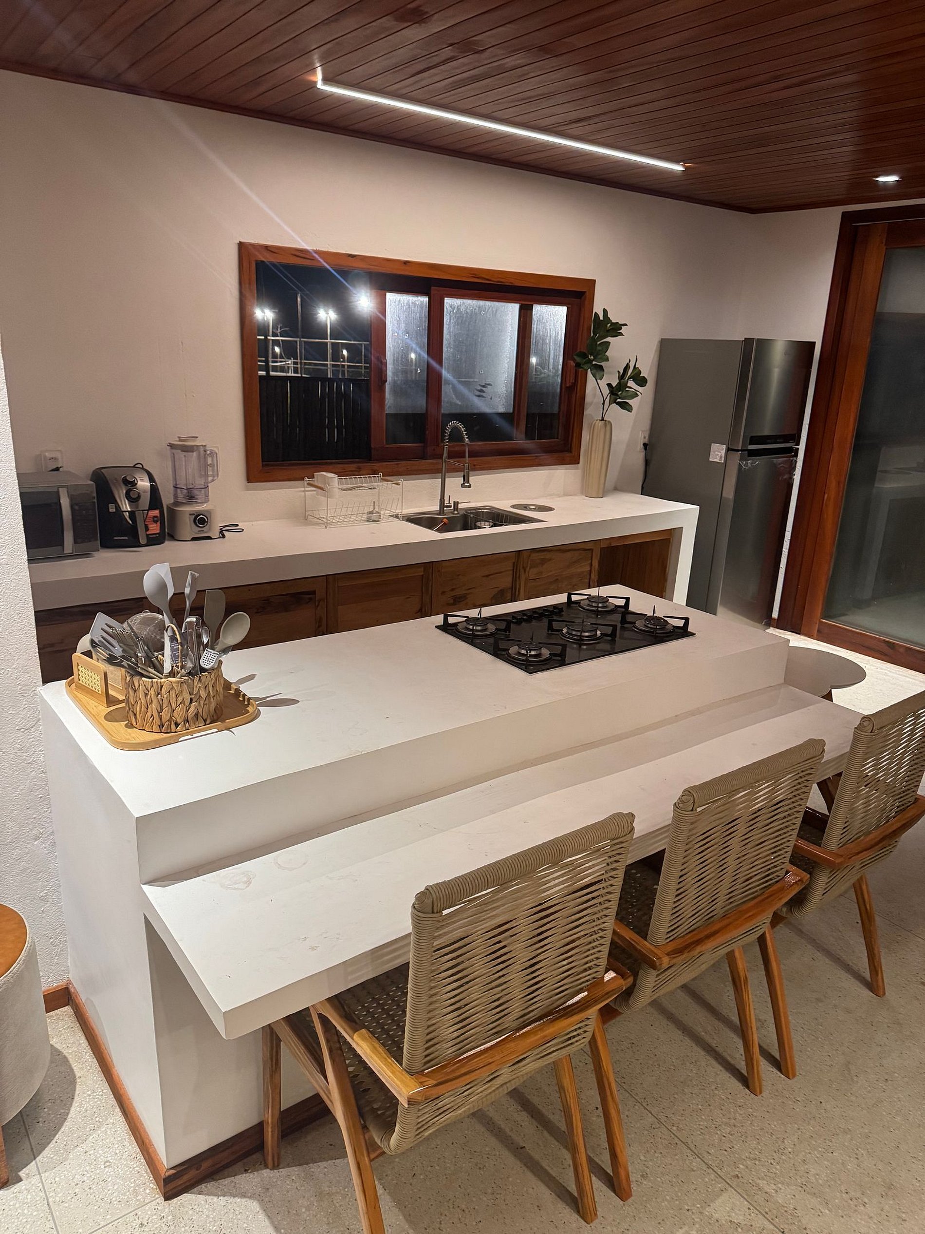 Essa casa está ganhando vida nos últimos detalhes, preparada com muito cuidado para receber hóspedes já no Réveillon. As 3 suítes térreas estão prontas, confortáveis e totalmente equipadas. A suíte do piso superior ainda não possui cama fixa, mas já conta com ar-condicionado e pode ser utilizada com colchões infláveis. Pequenos retoques finais podem acontecer, próprios dessa fase de conclusão, sem interferir no conforto, no lazer ou na experiência da estadia. Cada espaço foi pensado com carinho para que você se sinta em casa desde a chegada.