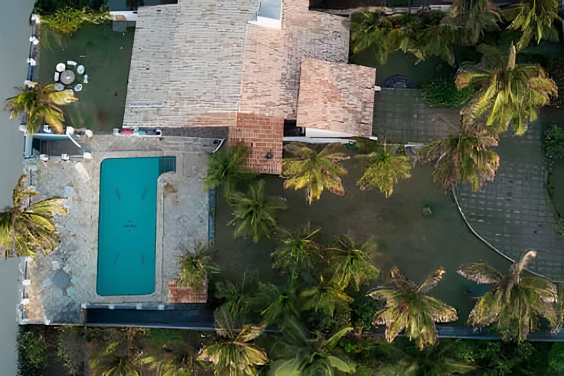 A fantastic big beach house located in front of the main big square -plaza(Praca) in the very center of Taiba. This is a one of a kind house for rent in Taiba right now. It can accomodate multiple car parking on its 1700 kvadrat meter yard. Making of breakfast can be provided for an additional small fee. NOTE: During Christmas, New Years and Carnaval holidays, the prices range between Rs. 6000to 9000 Quaint Beach House located in the center of Old Town Taiba. Taiba "meaning little village" is a small fisherman's village 65km from Fortaleza (FOR) Int´l Airport in North Western Brazil, 3 degrees south of the equator at only a mere 7 hour flight from Lisbon. Taxi pickup at the airport can be arranged, a 55 min drive at a cost of appr. RS. 200-300 depending on 5 or more persons. Walk straight from your own private pool down the stairs to the beach, a 10 meter walk :-) Stable air and water temp year round with a very nice onshore sea breeze . 28-30C daytime , 22-24 nighttime and 24-26 sea temp. Temp dew-point spread is typically 8-10 degrees: example temp 29 with a dew-point of 19-20 degrees. Therefore Air-condition is seldom needed. Rainy season" with morning and afternoon showers is typically during the months of March thru May. Taiba has several excellent restaurants, and is an idyllic haven for kitesurfing and water sports and relaxation in general Hammocks are located on several locations throughout the garden. Rent includes gardener, daily pool cleaning. Full maid service upon request, at an additional cost. Rs.100 per day excluding the cost of foods. making of breakfast and fruit juices etc. Lunch/dinner barbecue can be arranged for a small surcharge depending on number of guests etc. Beach buggy rental can be arranged and costs appr. 240 Brl/day A must see, feel, smell, and experience to appreciate !