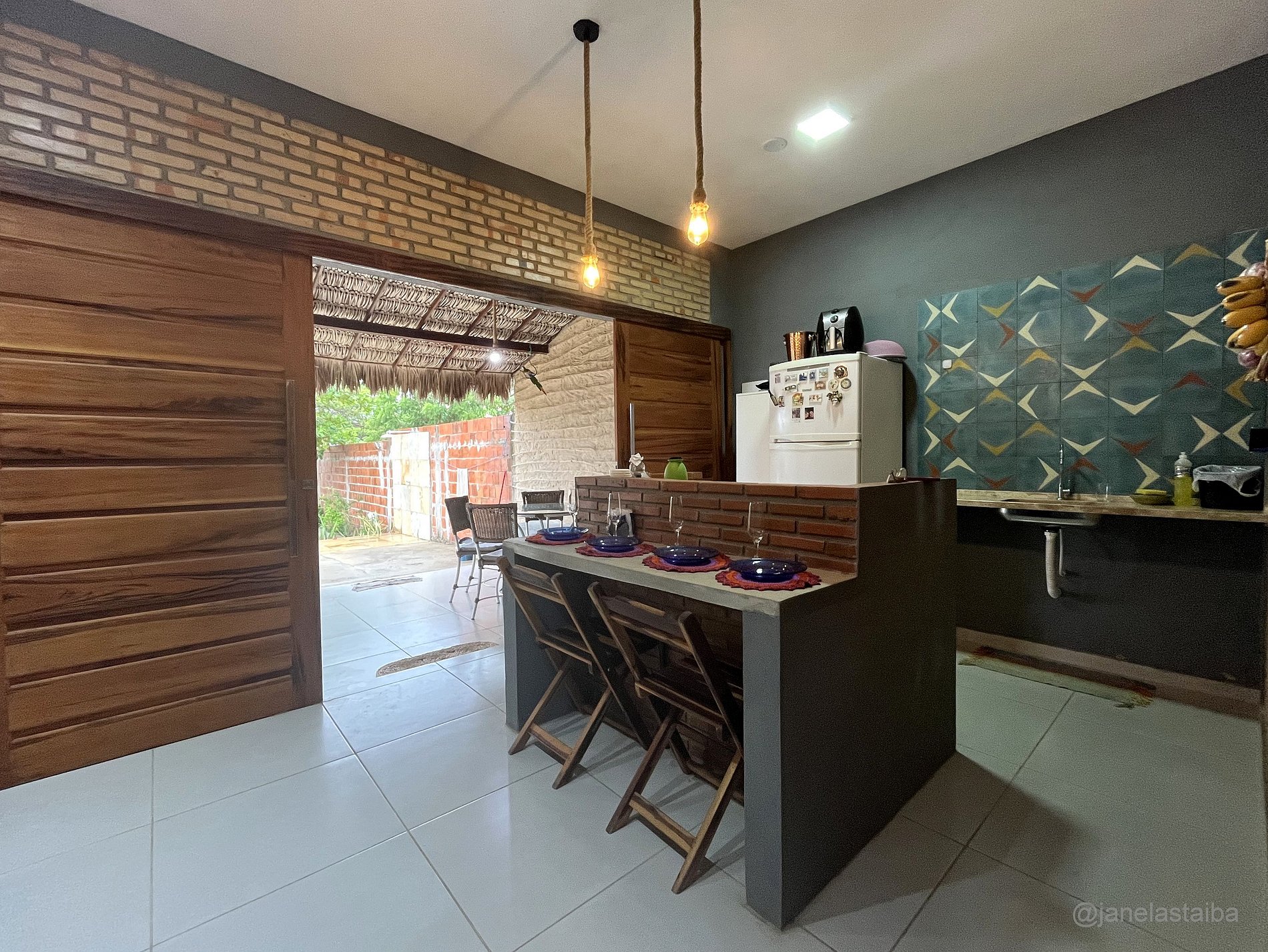 Conta com cozinha equipada, um quarto espaçoso climatizado e uma varanda acolhedora, sempre com uma rede para relaxar.